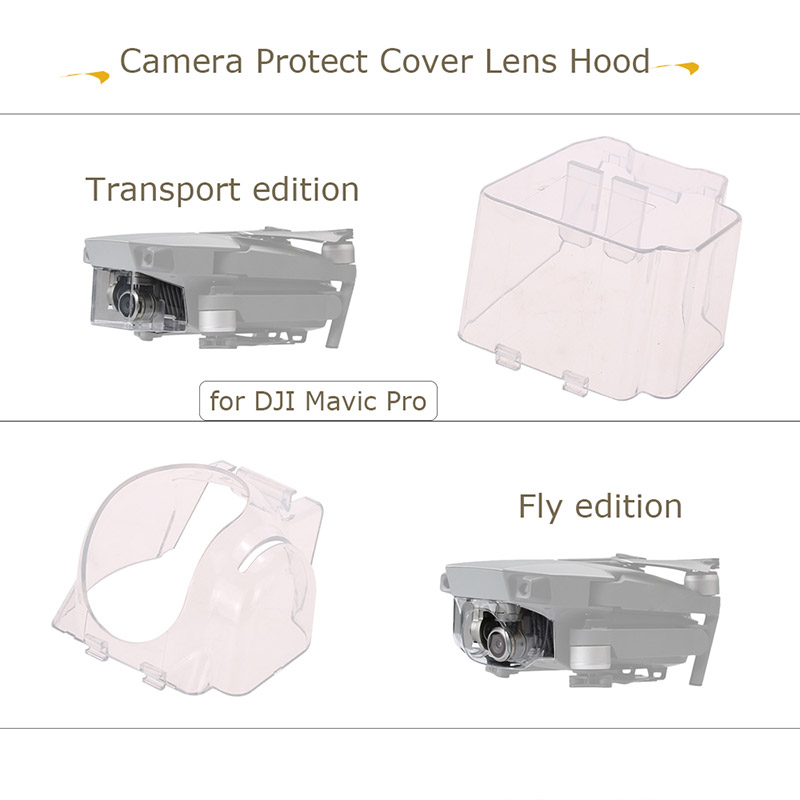 This Camera Protect Cover is compatible with DJI Mavic Pro drone. The fly edition can prevents glare and lens flare, help to shoot professional quality images and video. And the transport edition can protect the gimbal camera in the event of crash.