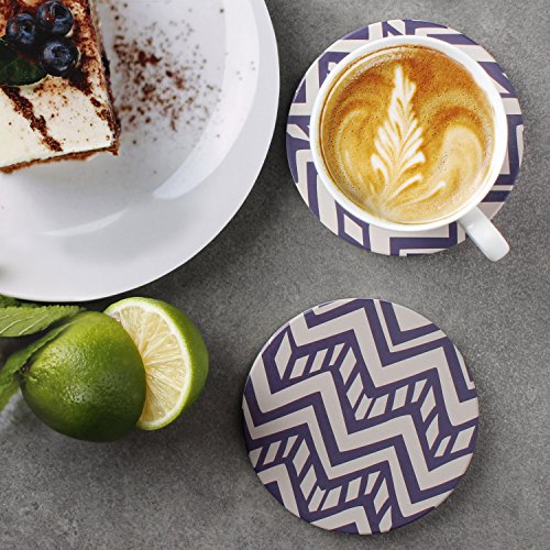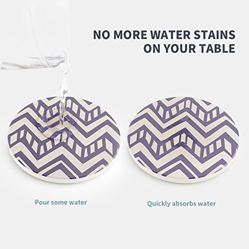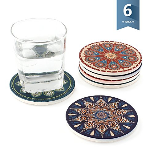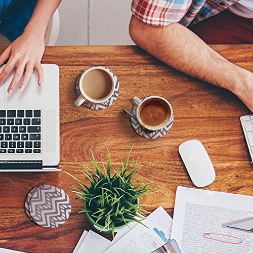 -. Feature : A SOFT CORK BACKING - Cute little coasters come with soft cork on the back. Due to this cork layer, they can nicely prevent scratches on your furniture and keep them in place rather that sliding around. / ABSORB MOISTURE EFFICIENTLY - Ceramic coasters can soak up moisture greatly from the glasses or cups, while they themselves don't become stained or discolored. They are a game changer. With these, you don't worry at all about condensation produced by iced liquid as well as minor spills, which puddle on the table and cause water rings. / PERFORT FOR MANY PURPOSES - With the modern and practical design, stone coasters are perfect for many purposes. They can be used as home decor, barware set, bartender supplies, whisky accessories, bar table pad etc.. Also, they are great for home, office, bar, restaurant or parties. / PERFECT SIZE & APPROPRIATE WEIGHT - Each of the coasters measures 4" in width and 0.27" in height. Thus, they are perfectly sized for a big mug, or 2-litre bottle. Plus they weigh enough so as not to get knocked off the table; that is to say, you will find it solid and durable. / AWESOME COASTERS FOR GIFTS - Well wrapped in a gift box, cool coasters could be the ideal gift for yourself or someone you love especially on special occasions such as birthday, housewarming, wedding, parties, Mother's Day, Christmas, etc..