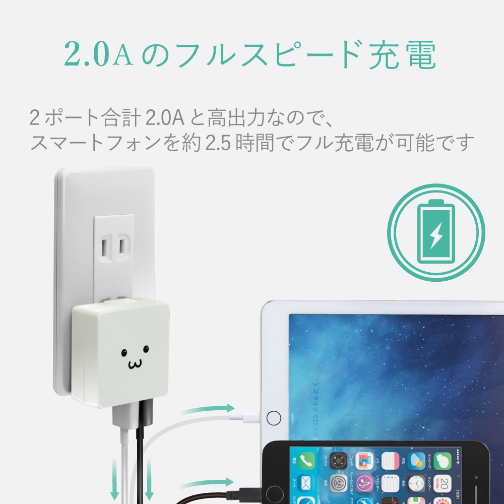 ■ Since the total output 2A is a high output type, the tablet can be recharged with confidence.