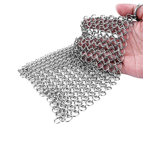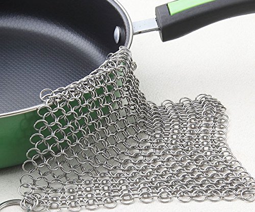 -. Title : Glowtag 8"x6" Stainless Steel Cast Iron Cleaner Chainmail Scrubber for Iron Pan Pre-Seasoned Pan Dutch Ovens Waffle Iron Pans Scraper Cast Iron Grill Scraper Skillet Scraper Pot Camp Chef For Cookware