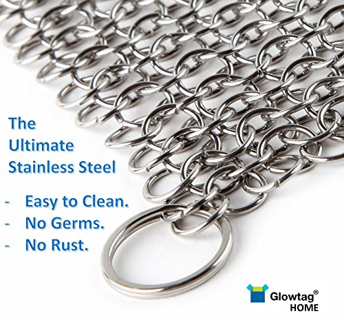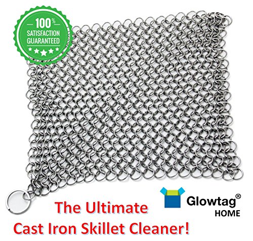 -. Feature : DURABILITY - This cast iron skillet cleaner is handcrafted by Premium 316L Stainless steel, It is ideal for cleaning all your cast iron cookware, such as cast iron pans , pre seasoned cast iron , skillets, dutch ovens , camp chef griddles , waffle irons and so on . Boasting unmatched durability and built to last as long as your cast iron products. Each chainmail ring is meticulously handcrafted with the highest quality food grade stainless steel in the industry. / EASE OF USE - This Household scouring pads / kitchen cleaner / household cleaning bruses or household cleaning tool helps to effortlessly clean all your cast iron products without stripping away accumulated flavor and seasoning or scratching your pans. Just see the magic of our cast iron cleaner work wonders and make cleaning a breeze through. Scrub any residue with warm water which will release quickly and easily. No soap or harsh detergents needed. Perfect for cast iron restoration as well. / PERFECTED - Each Ring is handcrafted for added Strength and Comfort and manufactured with high grade restaurant quality premium Grade Stainless Steel. Lightweight and convenient for cooking in home, camping or travel. Ultra-hygienic and dishwasher safe household scouring pad , kitchen cleaner , replacement of household cleaning brushes. Perfect household cleaning tool, grilling & BBQ Utensil, grill scrapers , outdoor cooking tools & accessories. Must have as camp kitchen equipment. / ALL PURPOSE USE -Treasured by chefs as cookware accessories a cast iron cleaner & scraper for pans, skillet, griddle, dutch oven, pot,waffle maker, wok, stainless steel cookware, glassware, Pyrex, casseroles,baking pan, tea pot, cookie sheet, cauldron, tortilla press, hibachi, cornbread, pie pan,Terracotta, Clay pot and more! A kitchen utensil & gadget Suitable for all kinds of cast iron pan kitchen cookware. / SATISFACTION GUARANTEED - Easy to use, clean and store.100% Satisfaction Guaranteed! We PROMISE you'll love it! Much better than a cast iron brush or metal scrub other pan scrapers and other Camping Stove Accessories. Click the "ADD TO CART" button now to order your original Glowtag product.