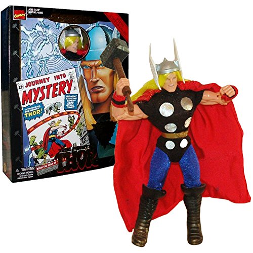-. Binding : Toy -. Brand : Marvel Comics -. EAN : 0645416468497 -. Feature : Includes: First Appearance THE MIGHTY THOR with Authentic Fabric Costume and Mjolnir Hammer / Figure measured approximately 8 inch tall / Produced in year 1998 / For age 5 and up -. Label : ToyBiz -. Manufacturer : ToyBiz -. ProductGroup : Toy -. ProductTypeName : TOYS_AND_GAMES -. Publisher : ToyBiz -. Studio : ToyBiz -. Title : ToyBiz Year 1998 Marvel Comics Famous Cover Series 8 Inch Tall Ultra Poseable Action Figure - First Appearance THE MIGHTY THOR with Authentic Fabric Costume and Mjolnir Hammer -. UPC : 645416468497