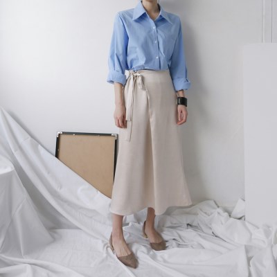 실키한 원단의 롱 스커트 소개해드려요. 랩스커트같은 디자인이지만 두르는 랩스커트는 아니고 지퍼로 기본으로 착용하시는 아이템이예요. 허리 부분 길게 나있는 리본 디테일로 본인 사이즈에 맞게 착용하시는 아이템으로 독특한 스커트입니다. 작년부터 브랜드에서도 이런 실키한 원단의 스커트, 원피스 아이템들이 많이 나오는데요, 요 아이템 또한 니트, 맨투맨, 셔츠와 두루두루 잘 어울려요. 컬러감은 사진보다 좀 더 선명한 컬러감이라고 생각해주세요 :-) 모델은 베이지, 스카이블루 착용하였습니다. MODEL / 166cm , 55size , S or 26 , SHOES_240 아이보리, 화이트류는 교환, 환불 불가하오니 신중한 구매 부탁드려요.