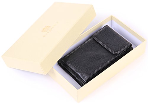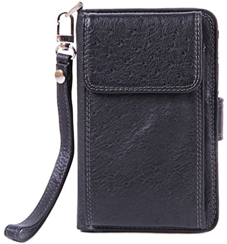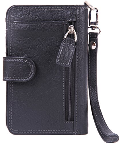 - Title : Borgasets Women's Leather Bifold Wallet Wrist Clutch for Smartphones up to 5-inch (Black)