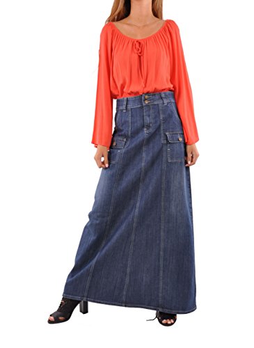 -. Feature : floor length 41.5" & regular fit / stretch blue denim & 98% cotton, 2% spandex / four pockets A-line style skirt