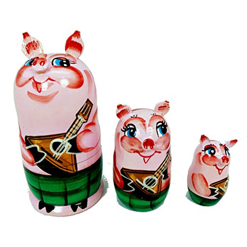 -. Title : 3 Pc Authentic Russian Hand Painted Pigs playing Madolin Nesting Dolls Matryoshkas