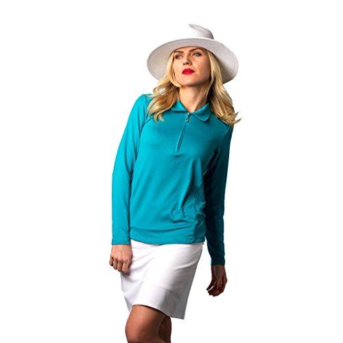-. Title : San Soleil Long Sleeve UPF 50 Sun Protective Polo with Swarovski Zipper Pull