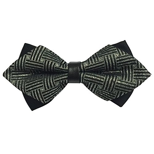 -. Feature : Style: Pre-tied banded mens bow tie / Material: Polyester Silk+PU Leather / Bowtie Size: Length:12cm/4.7'' Width:6cm/2.4'' / Sharp-angled PU Leather Pretied Bowtie / EASY to wear,with a clip.Perfect Fashion Accessory for Men to Any Wedding Business or Occasion Parties.