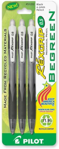 Pilot BeGreen RexGrip Mechanical Pencils, 0.5mm HB, 3-Pack (51222)