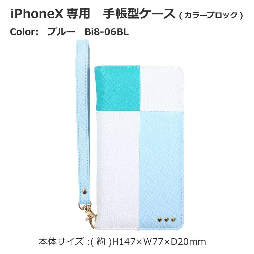カラーの切り替えがデザインのポイントです。 製造国:中国 素材・材質:ハードケース/PC(ポリカーボネート)生地/PVCレザー 商品サイズ:約H147×W77×D20mm 重量:約99g(ハンドストラップ込) 仕様:対応機種:iPhone X 付属品:ハンドストラップ(約18cm) ※サプライヤー直送品 ご注文後3~4営業日後の出荷となります【商品名】iPhoneX専用 手帳型カラーブロックケース ブルー Bi8-06BL