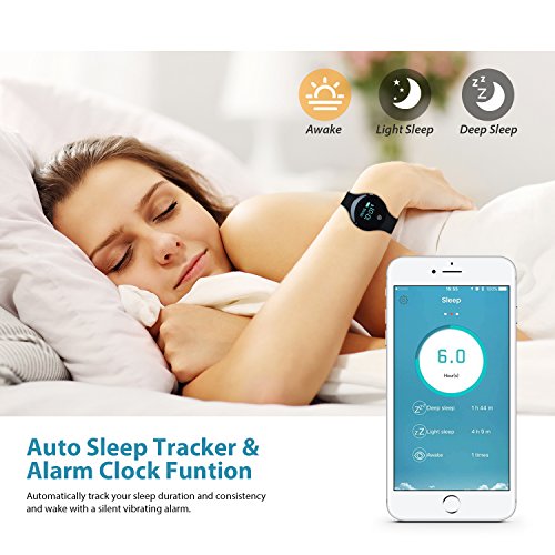-. Feature : Automonitor: Accurately track your steps, distance, calories burnt and sleep quality all day ,you can check daily activity and time on OLED display. / Auto Sleep Monitoring: Automatically track your sleep duration and consistency and wake with a silent vibrating alarm. / Convenient Companion: Built-in USB design simplifies the way you charge Fitness watch, simply connect to any universal power adapter, PC or power bank without requiring particular adapter and avoid the awkwardness of forgetting to carry a charger for long trips. / DISCOVER MORE FEATURES: See call, SMS and SNS notification,Sedentary Remind, Find phone,on your wrist to keep your phone out of sight and your goals in focus. This tracker requires IOS 8.0 & Android 4.4 above, Bluetooth 4.0 (Smartphone only, not for PC, IPad or Tablet) / WHAT YOU GET: We provide this fitness tracker with lifetime-warranty and 90-day refund policy within one day customer service. If you are not satisfied with purchase, simply return for a full refund or exchange. We will provide you with excellent after-sales service, please rest assured purchase the fitness tracker.