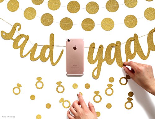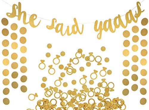 Studio : Life is a Party Publisher : Life is a Party Binding : Health and Beauty Product Description Add a little craziness to your celebrations with the Bachelorette to Bride range from party supplies company Life is a Party. This banner set contains 1x 'She Said Yaaas' banner with 8' (2.5m) long golden string (requires simple assembly), 2x circular disc garlands at 6' (1.85m) each (pre-assembled) 1x bag of diamond ring and dot confetti. All items are an eye-catching sparkly gold colour. Guaranteed to light up your event, day or night. Stocks are limited. Order today or risk missing out! 0