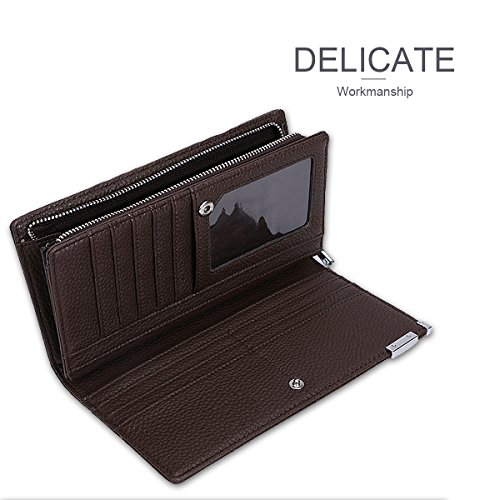 - GENUINE - Protects all magnetic stripes and EMV chips from wear and tear. Made with the Finest Grade Soft, Smooth Embossed Pebble Leather 12 RFID LOCK Credit Card Slots, Each can fit 1 or more cards, Big currency pocket. Convenient feature for those who travel