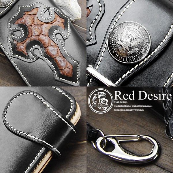 | 『Red Desire』本革×パイソン50¢コンチョバイカーズウォレット/長財布 ブランド『Red Desire』より登場です。 高級牛革本来の味を残しながら、独特の表情を 醸し出す技法を採用。 重厚感漂うフォルムが手にしたときの満足感を よりいっそう高めてくれます。本パイソンで装飾されたトライバルもまた圧巻の 仕上がりで、孤高の存在感を持ち他を圧倒します。 仕様も実用性を最優先に考慮されており、実に 使い勝手がよく、機能性にも優れています。 50¢コインのレプリカコンチョで全体のデザインを しっかりまとめているそのバランスも脱帽です。 |