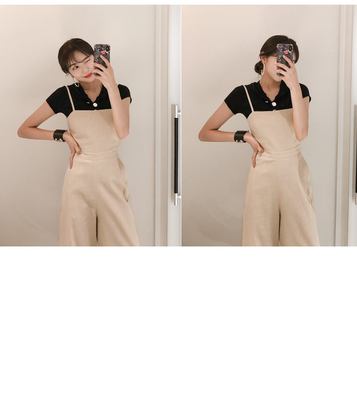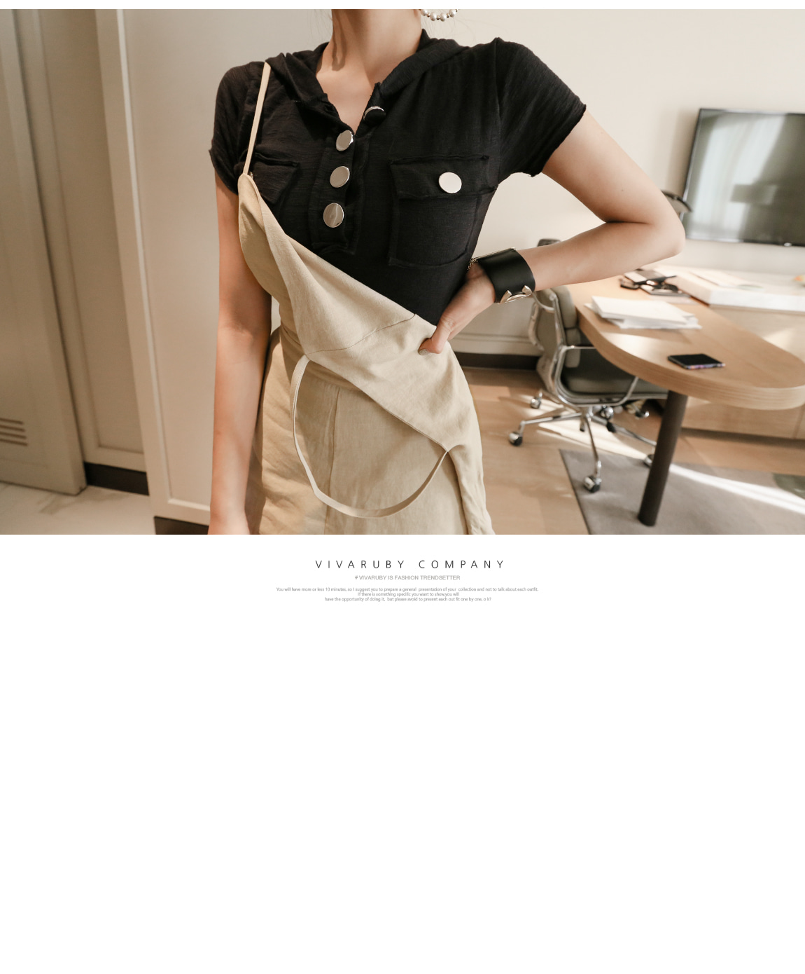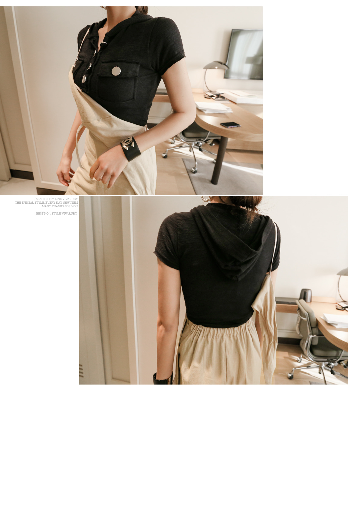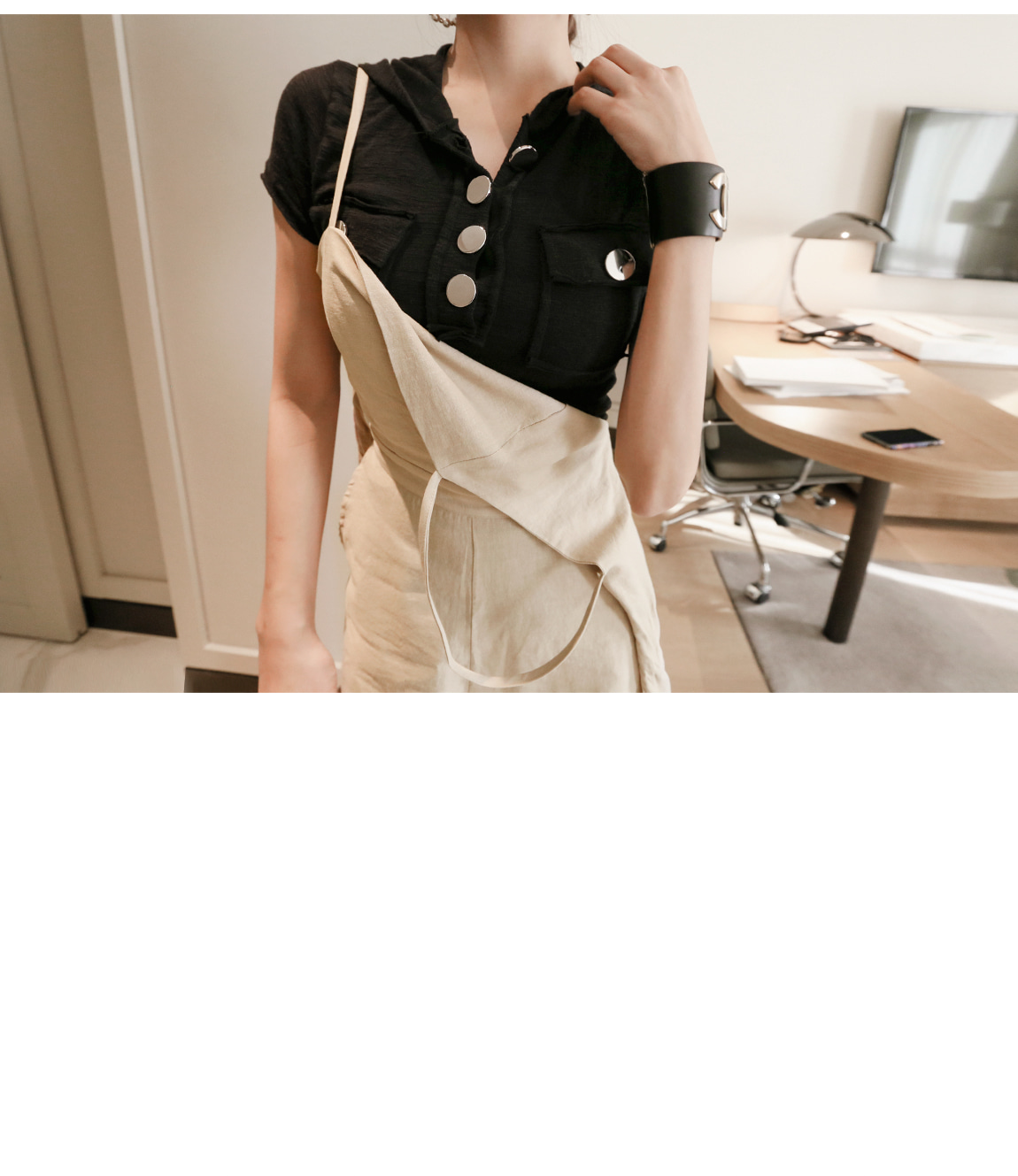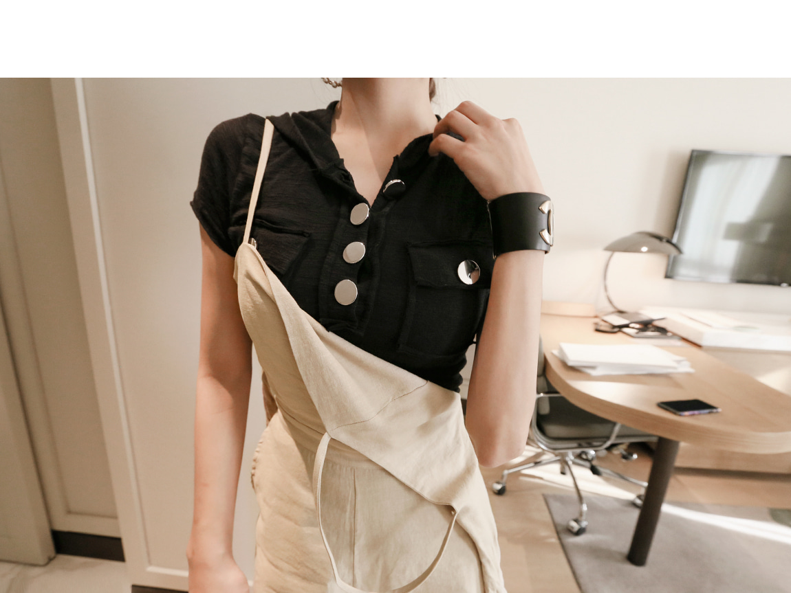 프론트 라인의 실버 버튼과 컷팅으로 유니크한 포인트를 주었어요