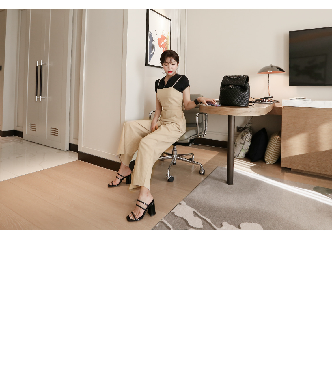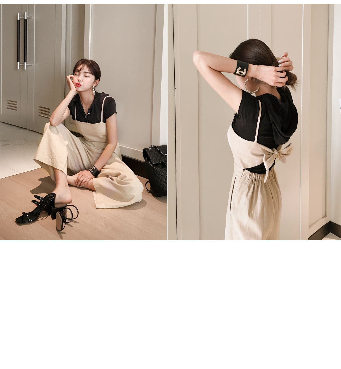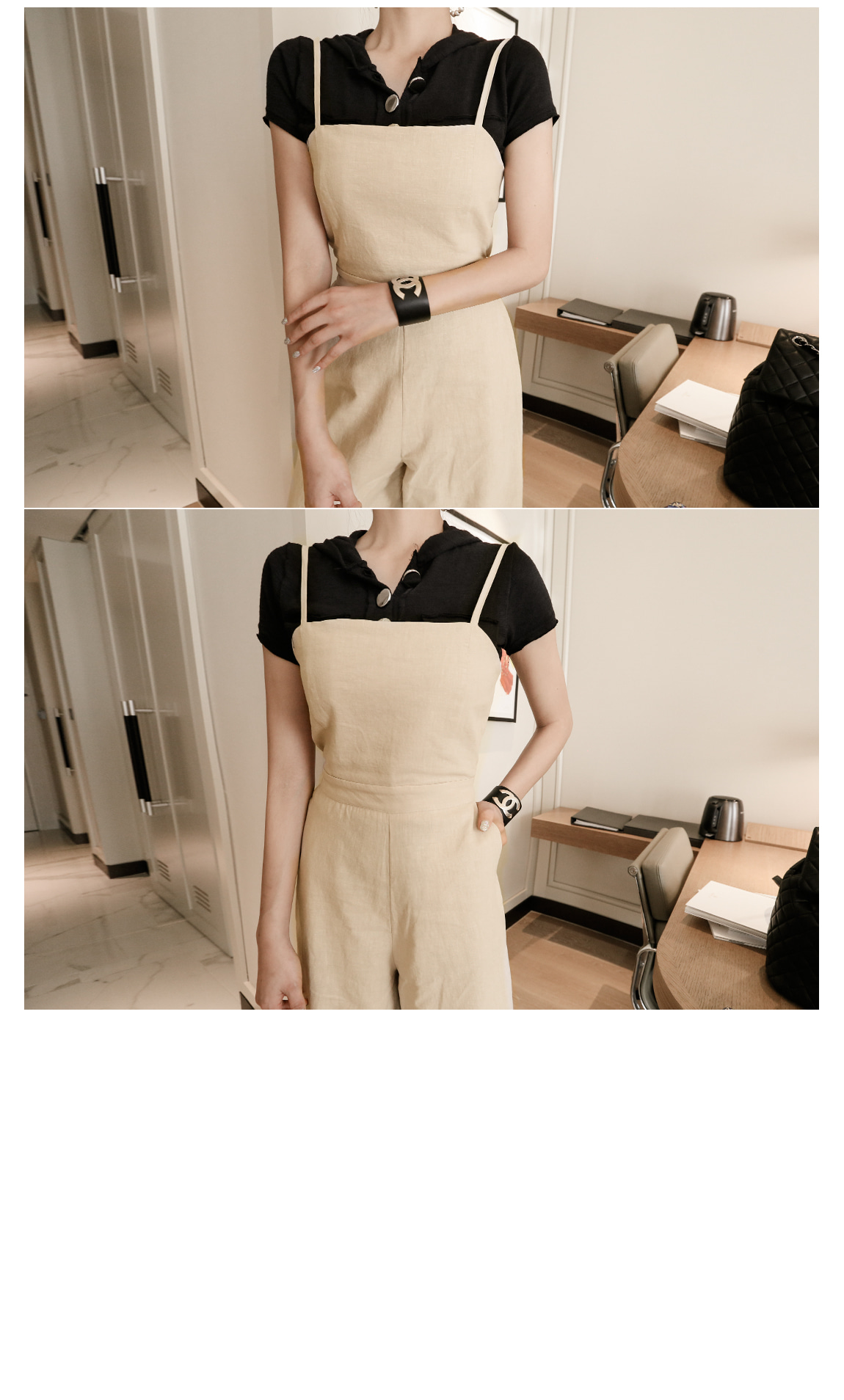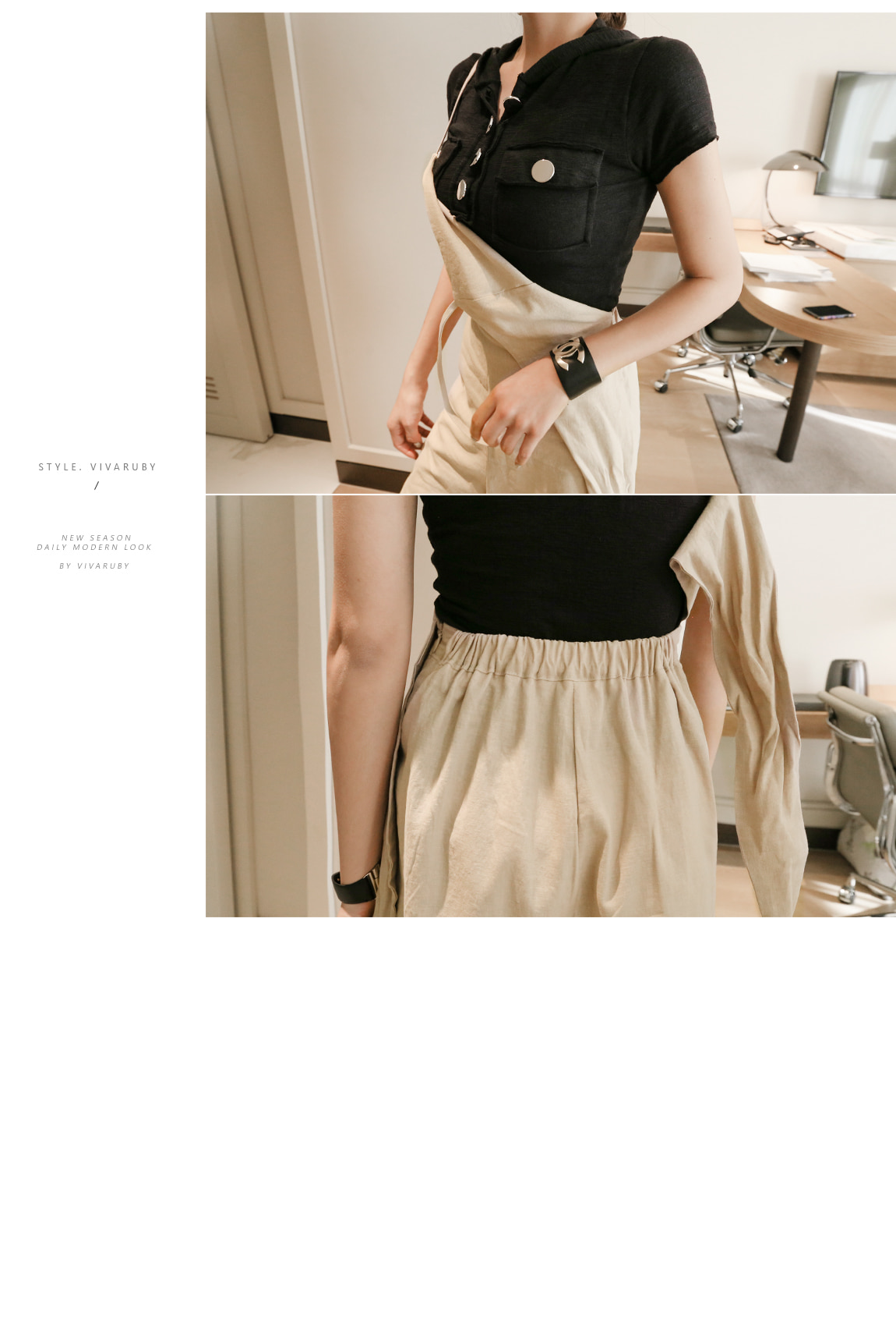 프론트 라인의 실버 버튼과 컷팅으로 유니크한 포인트를 주었어요