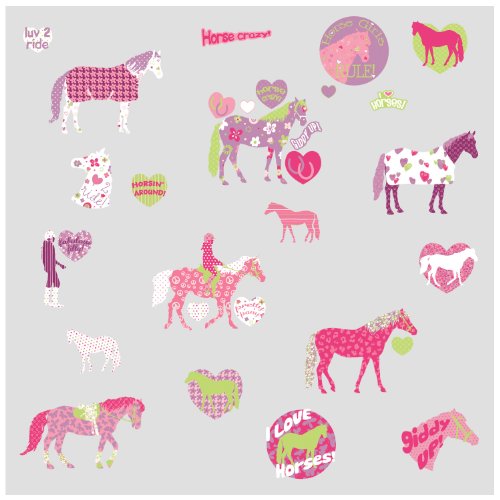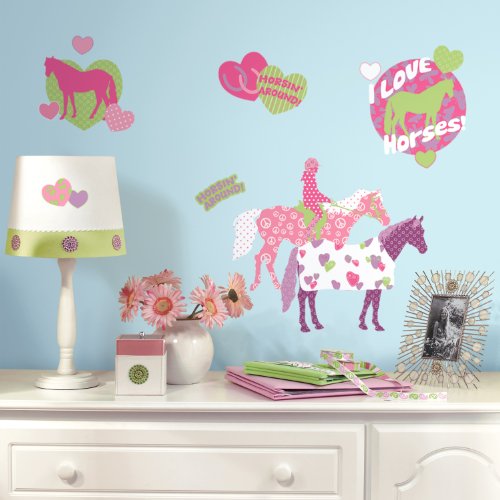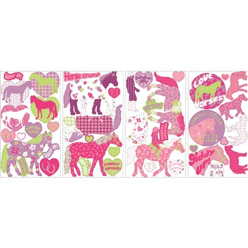 -. Binding : Tools & Home Improvement -. Brand : RoomMates -. Color : Pink -. EAN : 0880642929866 -. Feature : Decals range in size from 1" wide x 1" high to 9" wide x 7.75" high / Easy to apply - just peel and stick! / Applies to any smooth surface / Removable and repositionable with no sticky residue / Peel & stick product made in the USA -. IsAutographed : 0 -. Label : York Wallcoverings -. Manufacturer : York Wallcoverings -. Model : RMK1663SCS -. MPN : RMK1663SCS -. NumberOfItems : 1 -. PackageQuantity : 1 -. PartNumber : RMK1663SCS -. ProductGroup : Home Improvement -. ProductTypeName : BUILDING_MATERIAL -. Publisher : York Wallcoverings -. Studio : York Wallcoverings -. Title : RoomMates RMK1663SCS Horse Crazy Peel & Stick Wall Decals -. UPC : 885316007116
