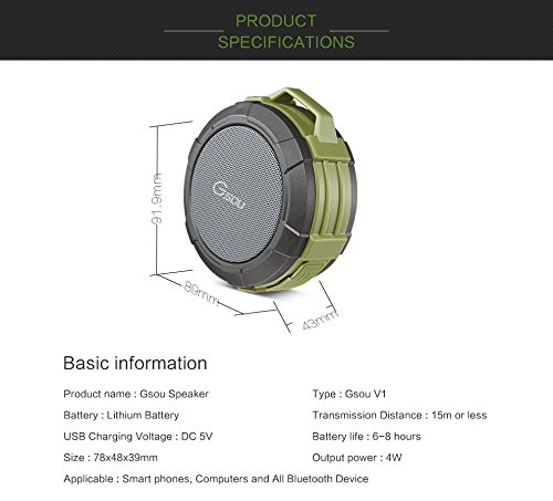 Double Wave Type Diaphragm Design: Using intelligent Double wave to reduce the noise to thin film design. Whether it is listening to music, or received calls hands-free can play the real sounds! Size: 3.5 x 3.5 x 1.65 Inches Includes: Speaker, charging cable and hook. Order you V1 Bluetooth speaker today.