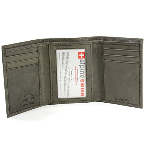 Alpine Swiss Men's Genuine Leather Trifold Wallet Gray