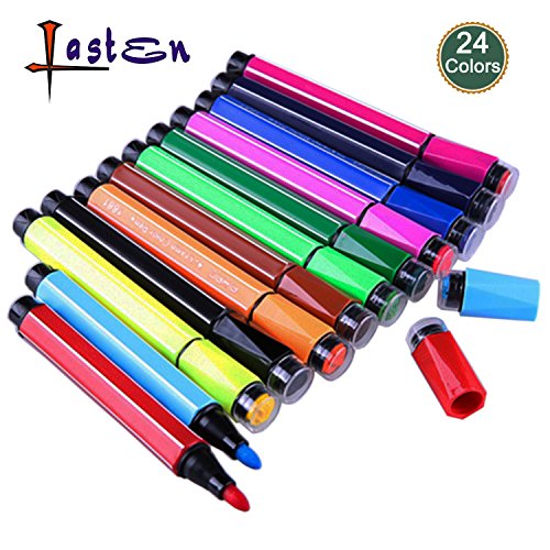 - VERSATILE--Premium color pen set has a selection of 24 bold, vibrant colors. Suitable for wall arts, shoes, handbags, table cloth, place mats, baby vests, etc. Being minimal bleed helps you do your DIY with more ease and less hassle.