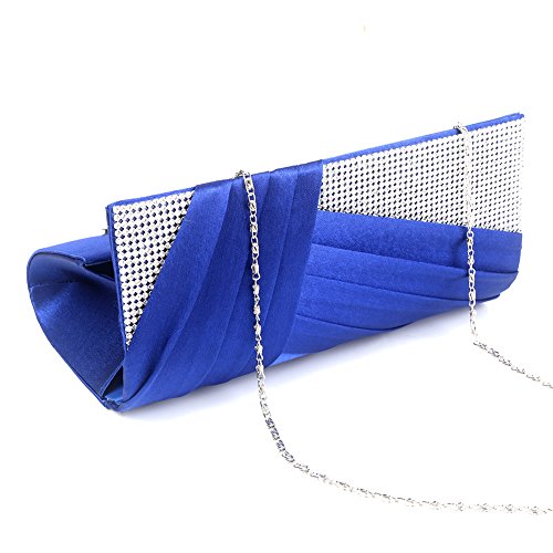 Jubileens Womens Elegant Pleated Satin Crystal Fashion Clutch Evening Bag Purse (Blue)