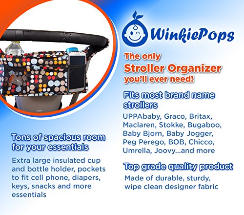 Stroller Organizer for Stylish Moms - Deluxe Universal Baby Accessory/Diaper Bag by Winkiepops - Perfect Baby Shower Gift or Gift for Parents - Lifetime Guarantee