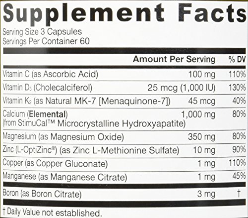 -. Feature : Bone-Up provides StimuCal ossein Microcrystalline Hydroxyapatite (MCHA) (from free-range New Zealand calves), which includes the superior combination of the inorganic calcium lattice of MCHA within an organic protein milieu. / StimuCal is rich in native type I collagen-the predominant protein found in bone-and has been clinically demonstrated not to disproportionately spike calcium blood levels as do other forms of calcium, such as the carbonate and citrate salt forms. / StimuCal is combined with vitamin D3 and vitamin K2 (as MK-7 [menaquinone-7] from natural fermentation [a more bioavailable form of vitamin K]) to support the proper deposition of calcium into the bones, as well as assist in building up the bone matrix. / Bone Up also supports cardiovascular and arterial health. / HEALTH CLAIM: AdE.q.u.a.t.e calcium and vitamin D as part of a healthful diet, along with physical activity, may reduce the risk of osteoporosis later in life. / bone-up bietet stimucal ossetin microcrystalline hydroxyapatite (MCHA) (von freilaufenden Neuseeland Waden), das mit dem Superior Kombination der anorganischen Calcium Gitter aus MCHA innerhalb einer organischen Protein Milieu. / stimucal ist reich an Native Typ I collagen-the vorherrschende Protein gefunden in bone-and wurde klinisch gezeigt, nicht zur überproportional Spike Calcium Blutzuckergehalt als andere Formen von Calcium, wie die-Carbonat und Citrat Salz-Formen. / stimucal ist verbunden mit Vitamin D3 und Vitamin K2 (MK-7 [menaquinone-7] aus natürlichen Gärung [als mehr bioverfügbares Form von Vitamin K]) zu unterstützen das ordnungsgemäße Deposition von Calcium in die Knochen, sowie Assist in den Aufbau der Knochenmatrix. / Knochen bis auch unterstützt Herz-Kreislauf- und arteriellen Gesundheit. / HEALTH Claim: ausreichende Calcium- und Vitamin D als Teil einer gesunden Ernährung zusammen mit körperlicher Aktivität, kann das Risiko von Osteoporose im späteren Leben verringern.