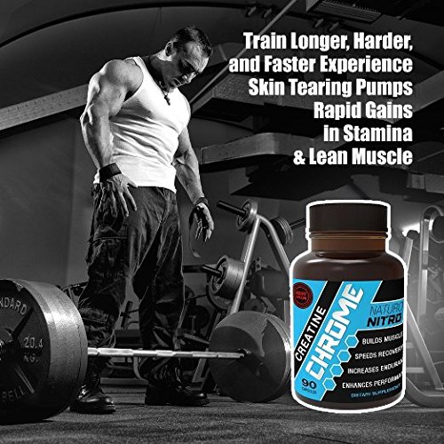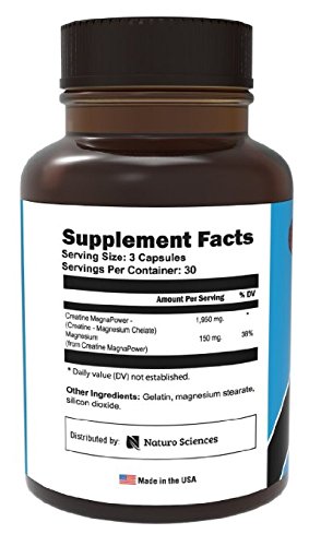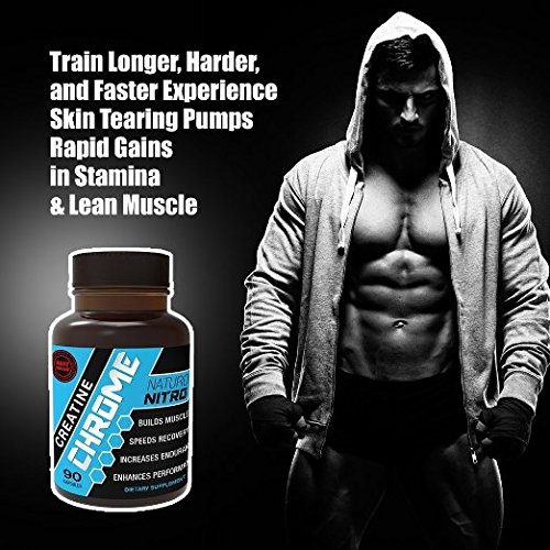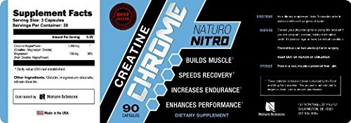 -. Binding : Misc. -. Brand : Naturo Nitro -. Feature : Advanced Creatine System Fuels Your Body with More ATP and Amplified Energy. Naturo Nitro Creatine Chrome contains Creatine MagnaPowder™ — an advanced, patented form of creatine called magnesium creatine. Scientific studies reveal this form of creatine is absorbed by your body ultra-fast (much faster than creatine monohydrate), flooding your muscles with ATP (energy) allowing you to power through workouts and experience incredible gains in strength, size, and lean muscle mass. / NO MORE Loading Phases or Bloating. Our advanced creatine complex is absorbed by your body ultra-fast by penetrating the muscle cell. This means no more loading, bloating, cramping or dehydration. Most users notice a difference in their first dose. / Maximizes Lean Muscle Mass and Size. Naturo Nitro Creatine Chrome works by increasing the supply of ATP in your muscles. When this happens the cells in your muscles get bigger as a result of all the additional ATP. This allows you to train harder, lift heavier and longer, leading to massive muscle gains. Creatine has also recently been shown to be a myostatin inhibitor, meaning it prevents the myostatin protein from being synthesized by your skeletal muscle. / Speeds Up Muscle Recovery And Fights Fatigue. Creatine promotes lean muscle mass, acts as a support system to prevent against muscle breakdown, and aids in muscle recovery. Creatine also enhances the ability to produce higher muscular force, especially during short bouts of maximal exercise. / Combines The Power of Creatine and Magnesium in a Single Dose. Magnesium is essential for over 300 bodily functions. It has been shown to enhance strength, energy, and endurance levels. The most important aspect of magnesium's relationship to creatine is that creatine requires magnesium for maximum conversion to Adenosine triphosphate (ATP) also known as energy. -. Label : Naturo Sciences -. Manufacturer : Naturo Sciences -. PackageQuantity : 1 -. ProductGroup : Pet Products -. ProductTypeName : PET_SUPPLIES -. Publisher : Naturo Sciences -. Studio : Naturo Sciences -. Title : Creatine Chrome with Magnapower™ (Creatine Magnesium) — New Quality Creatine Formula Promotes Rapid Gains in Stamina, Strength and Lean Muscle Growth - 90ct, 30 Servings