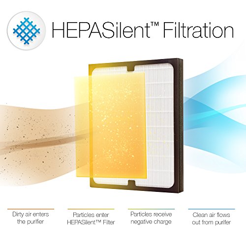 True HEPA performance, enabled by HEPASilent Technology with particle filtration and electrostatic charge, captures 99.97% of airborne pollutants; allergens, mold, dust, pet dander, smoke particles and pollen