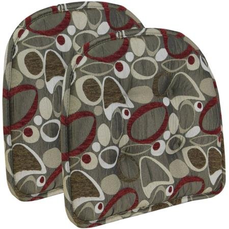 -. Title : Gripper Non Slip 15" x 16" Red Circles Tufted Chair Cushions, Set of 2