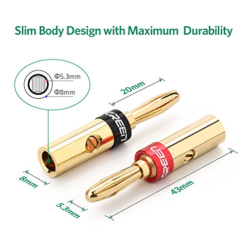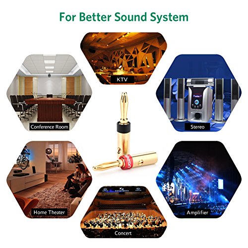 Banana plugs are designed for use with amplifiers or speakers that use traditional binding posts, which can supply a high-quality signal path from audio device like a speaker to an audio/video receiver, amplifier or other professional sound application.
