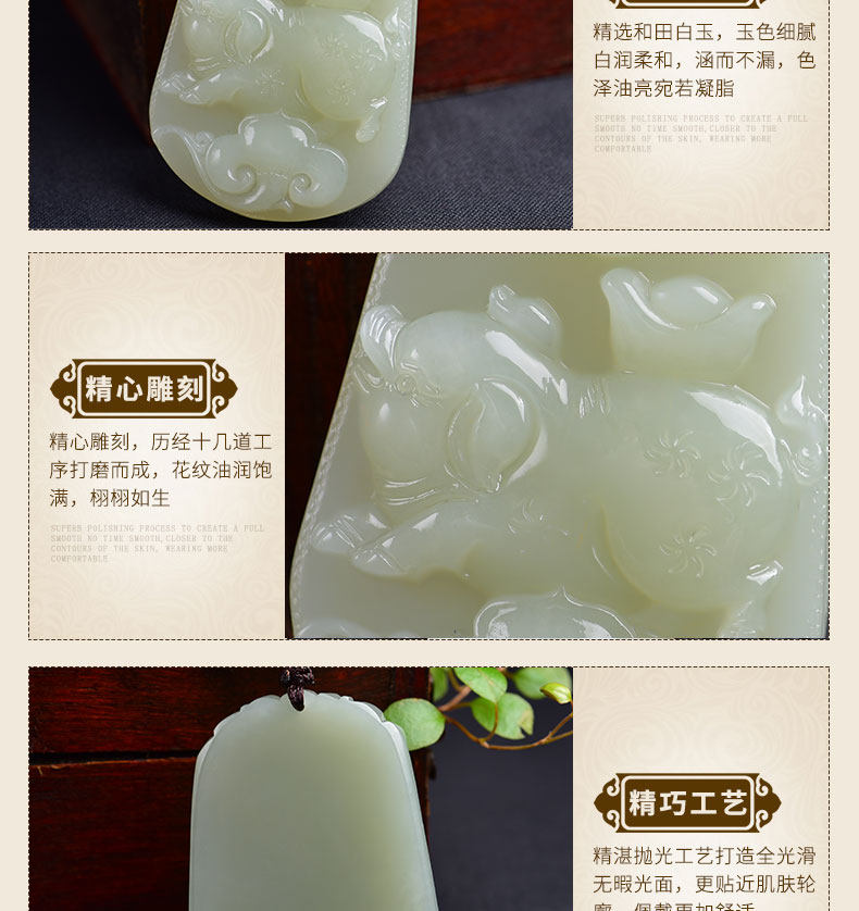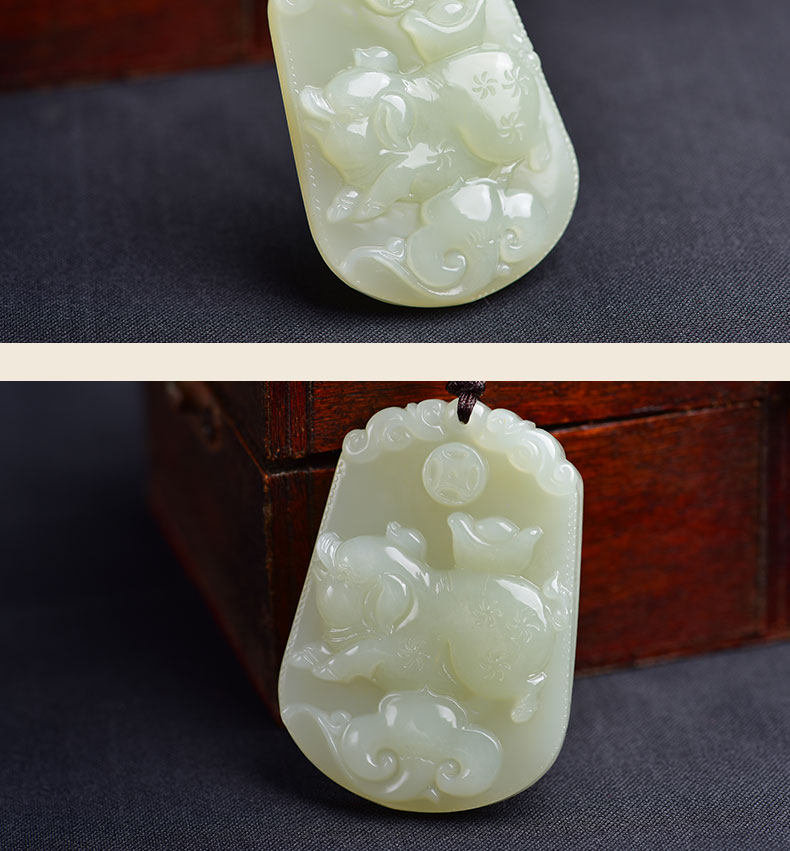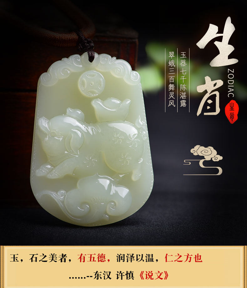 开光和田玉十二生肖吊坠属猪白玉挂件男女款项链玉坠玉佩饰品礼物
