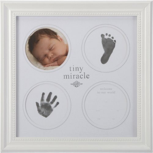 -. Feature : Commemorate the joyful event of baby's birth with this frame that can be tabletop or wall displayed / Measures 14" x 14" / Glossy white composite wood frame with decorative mat featuring silver foil details / Space for photo, first P.R.Ints and birth information / Includes non toxic black ink pad and instructions