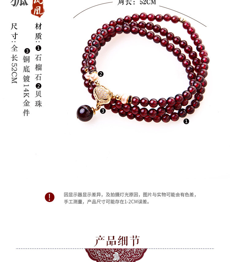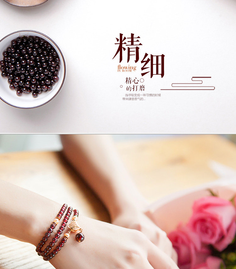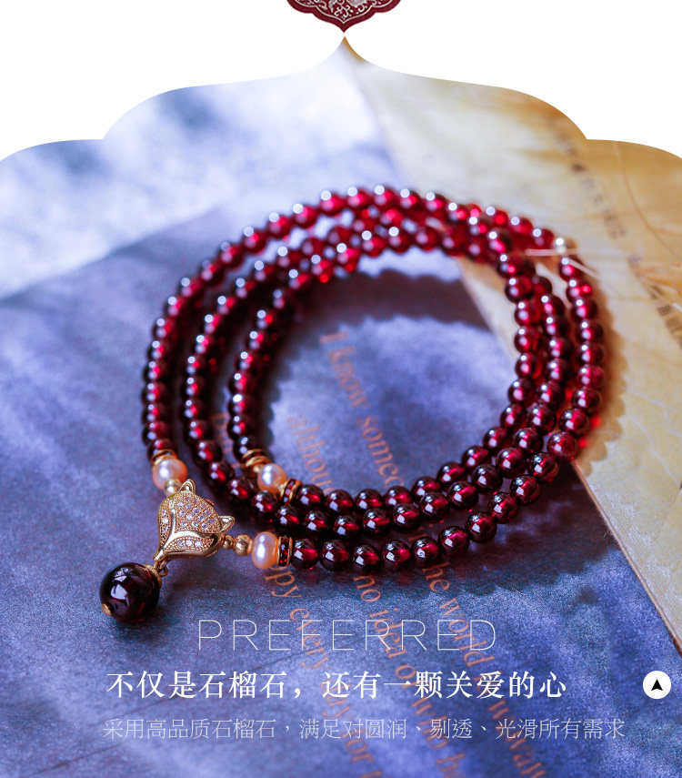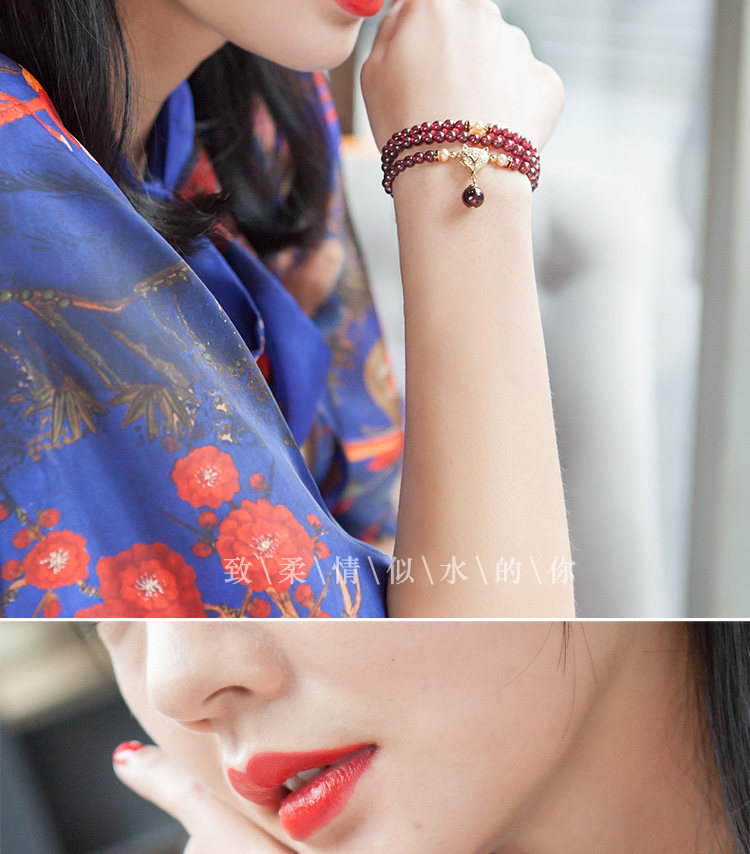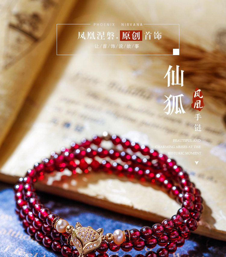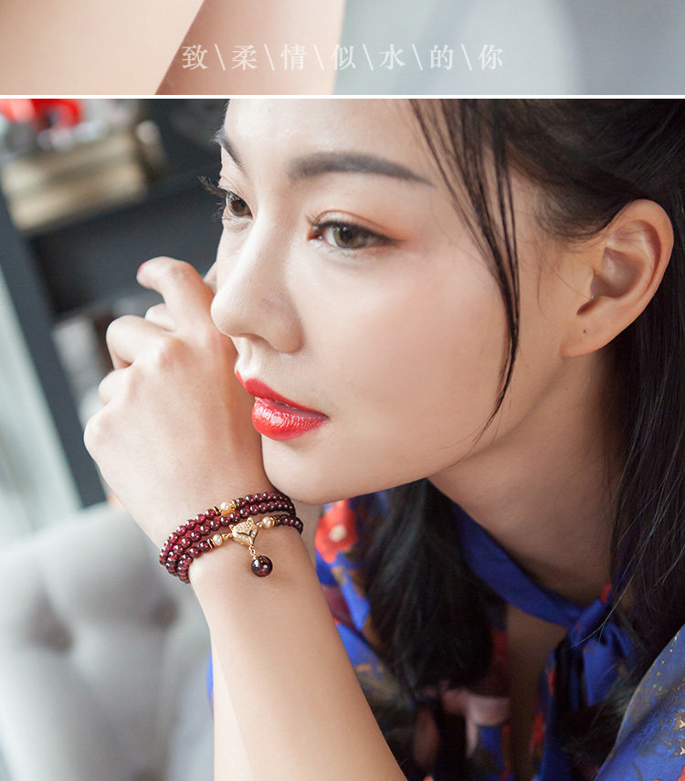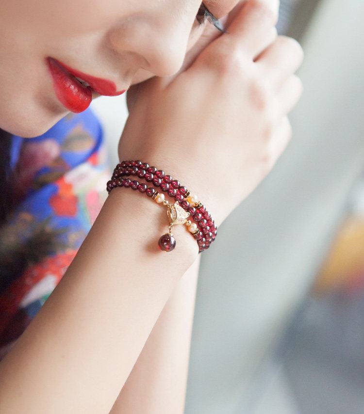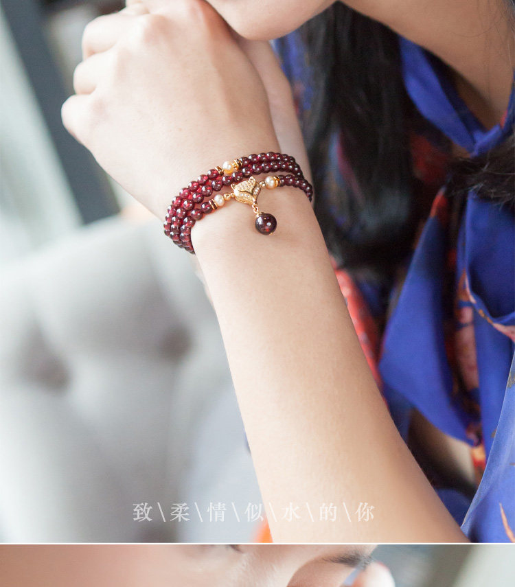 凤凰涅磐正品天然6A酒红石榴石手链 女多圈多层手串手工编织饰品
