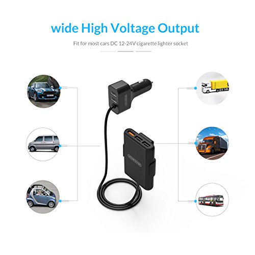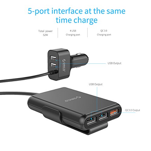 ORICO 52W Portable Car Charger with a Quick Charge 3.0 and 4 USB3.0 Ports for iPhone, Samsung Galaxy, iPad and more