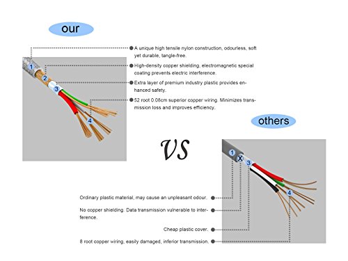 [Super Durability] Made of pure copper core inside and nylon braided material jacket make these cables more durable and robust and tangle-free.
