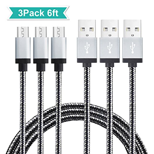BUDGET & GOOD 3 Pack 6Ft High Speed Nylon Braided Micro USB Cable Cord Sync and Charging Cable for Android Tablets & Phones Samsung Galaxy LG Motorola Nexus Sony Xiao Mi and More(Black)