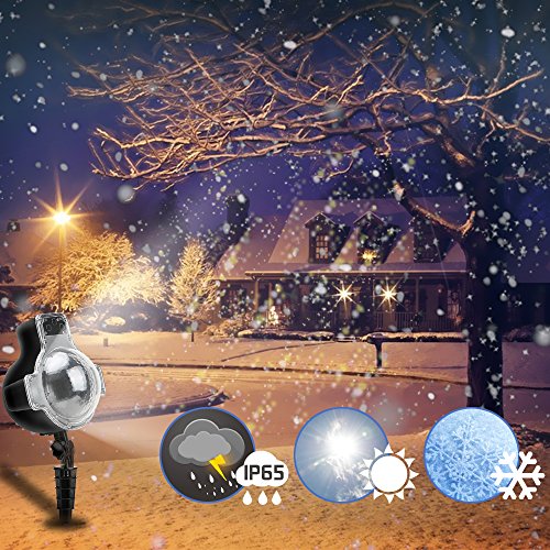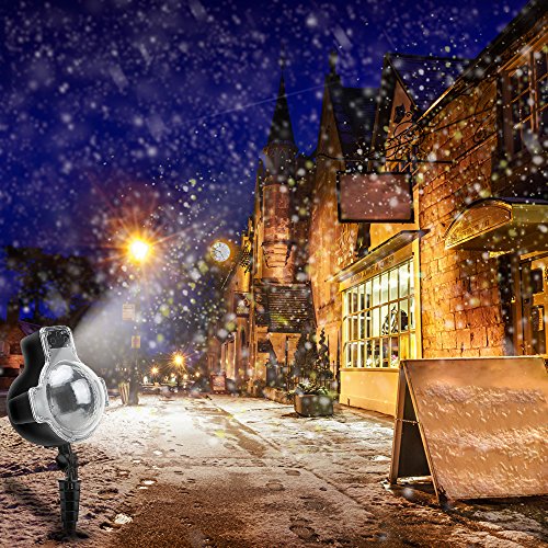 - 【2017 Latest Version LED Snowfall Projector Lights】 snowfall moving automatically, creating a realistic snow scene, romantic flash flurries can add more fun for your party and festival. A nice wall and lawn decoration light. this rotating snow falling light projects larger coverage area (15-50㎡/ 18-60 sq.yd) at the same spot distance (3-6 m/ 9.8-19.7 ft).
