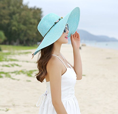 About Size: This shirt has the right size. Cap: 22.83 "; Edge: 5.51"; Height: 3.93 "and has an internally adjustable harness to accommodate various head shapes and sizes Material: This large woven hat is woven from straw, eco-friendly, skin-friendly, breathable, comfortable and soft so you can fold it for easy carrying, folding and carrying Sunscreen: UPF for this hat is 50 and blocks about 50% -80% of UVA / UVB rays; the 5.51 "edge provides a perfect shadow on your face behind your neck and helps protect the skin from the sun The harmful rays keep your face beautiful and healthy Elegant and practical: Ideal for hiking, camping, touring, church activities, competition days, and the hats can be worn on weekends honeymooning with an elegant dress, cowboy or beach bikini, 0