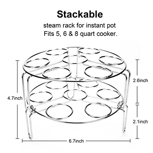 The stainless steel steamer rack made from food grade 304, so it's rustproof, easy to clean, and even dishwasher safe!