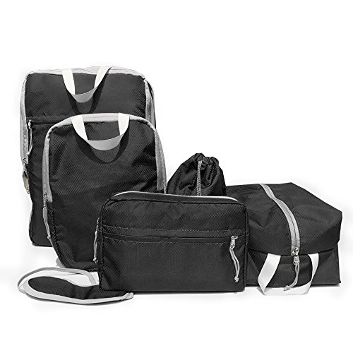 Packing Cubes, JEMACHE 5 Set Packing Organizers for Compression Travel Luggage Waterproof Packing Bags System Pouch with Shoe Bag & Laundry Bag(Black)