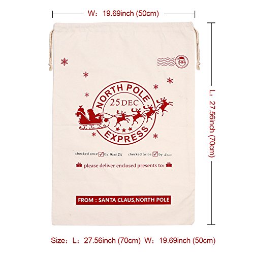 ★ 19.69 X 27.56inch / 50X70cm, 2pcs canvas christmas santa sack bags - Gift for kids large size 100% cotton canvas, sturdy, durable and comfortable.