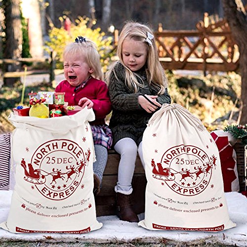 Aytai 2pcs Large Santa Sacks with Drawstring Christmas Bag, Christmas Gift Bags for Kids 27 x 19 Inch Canvas Xmas Presents Storage