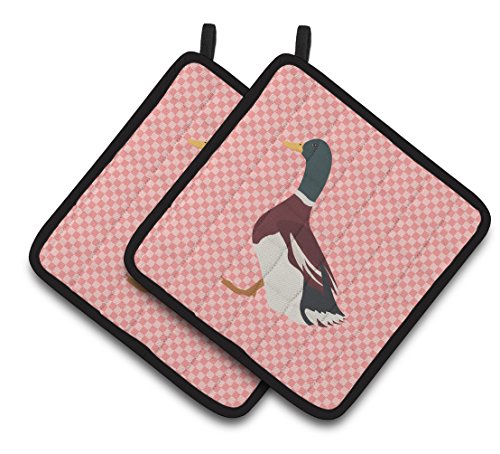 Caroline's Treasures BB7856PTHD Rouen Duck Pink Check Decorated Pot Holder, 7.5" x 7.5", Multicolor
