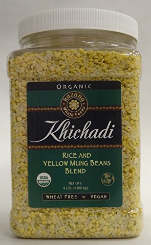 -. Binding : Health and Beauty -. Brand : Kazana Whole Foods -. Color : Multi-colored -. EAN : 0875777005370 -. Feature : An authentic Indian Kichadi (Rice) dish made with long grain rice and split yellow Mung Dal. / Gluten Free, 100% Organic, Vegan and Preservative Free. / A Jar of 4Lb Pack provides 25 servings. / The Jar contains an equal part of Organic Rice and Organic Yellow Mung Beans. -. IsAdultProduct : 0 -. Label : Komal Herbals, Inc. -. Manufacturer : Komal Herbals, Inc. -. MPN : 537 -. PackageQuantity : 1 -. PartNumber : 537 -. ProductGroup : Health and Beauty -. ProductTypeName : HEALTH_PERSONAL_CARE -. Publisher : Komal Herbals, Inc. -. Studio : Komal Herbals, Inc. -. Title : Kazana Kitchari Grain Blend - Rice & Yellow Mung Beans Mix, USDA Certifiied Organic, 4Lb Jar -. UPC : 875777005370