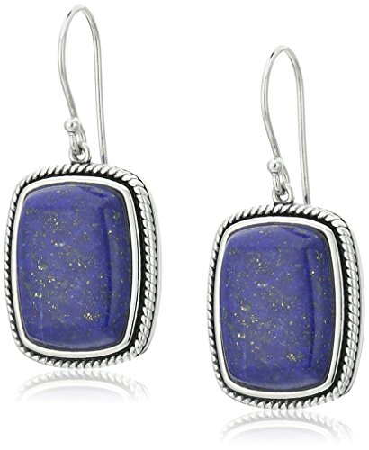Lapis rectangle cabochon oxidized effect rope frame bezel-set fishhook drop earrings set in rhodium-plated sterling silver