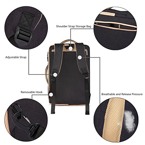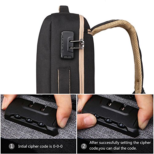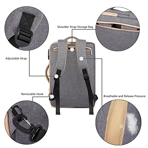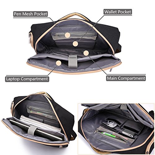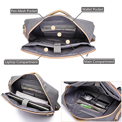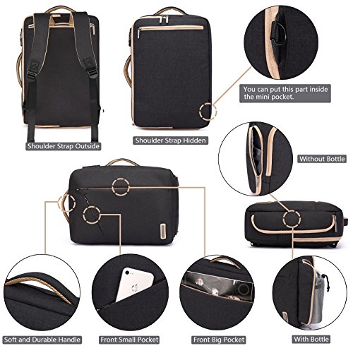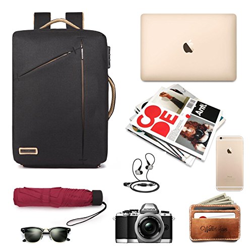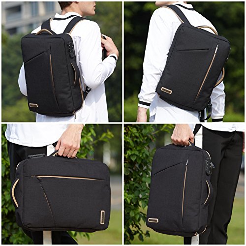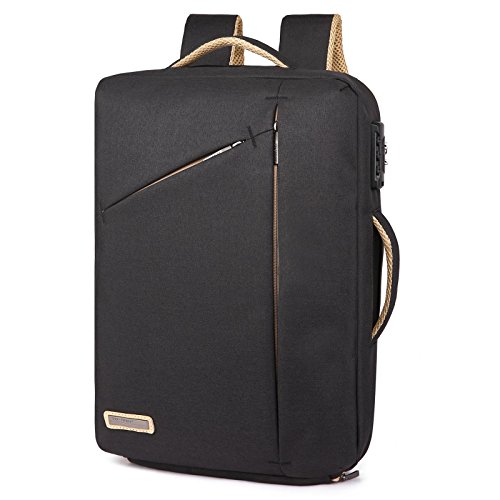 -. Feature : The Laptop Backpack Dimension:16.9 x 12.2 x 3.15inch(LxWxH)/43 x 31 x 8cm(LxWxH);Weight:1.98lb/0.9kg;with dedicated laptop compartment holds laptops less than 17 inch.Please Check the Dimensions before Purchasing., Fits Apple Macbook Pro, Macbook Air, HP Chromebook, Dell Insipron Notebook, and More / Multi Compartment and Classified:various pockets provide a separated space for your Laptop, iPhone, iPad, pen, keys, wallet, books, clothes,bottle and more. Easy find what you want(one large packing compartment,laptop compartment,phone bag,2 front zipper pockets,1 pocket in the bottom) / Safety: Included a Theft Proof Code Lock & Durable Mental Zippers,it is safe guaranteed for protecting your valuable items inside. No need to worry theft easily opening your backpack when you are travelling or lining up. / Multipurpose Knapsack & Water Repellent:Made from durable eco-friendly canvas and polyester fabric with two padded shoulder straps ,offers light weight carrying and force reinforcement,perfects for business trips, weekend getaways, go to college, shopping and other outdoor activities in daily life / Carry Way:Handbag or Backpack.This bag is perfect for any occasion.It allow for a no-fuss conversion from briefcase to backpack at any moment. The shoulder straps can put in the back zipper pockets,fashion and suit for various occasions.