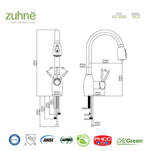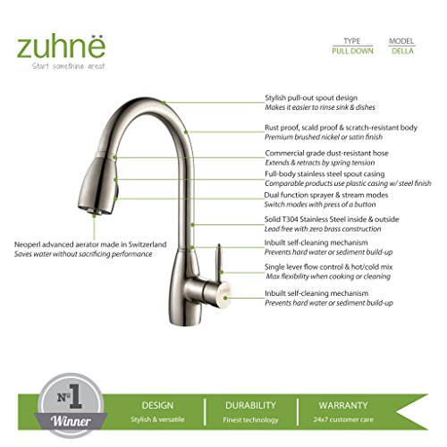 Zuhne Della Stainless Steel Pull Out Water Saving Kitchen Faucet