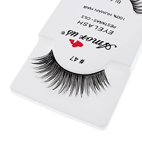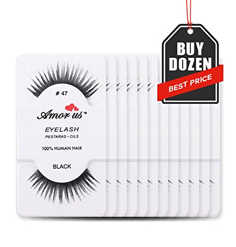 Amorus 12 Pairs Multipack #47 False Eyelashes Dozen Set 100% Natural Hair Black Handmade Comfortable Reusable Strip Fake Lashes Pack