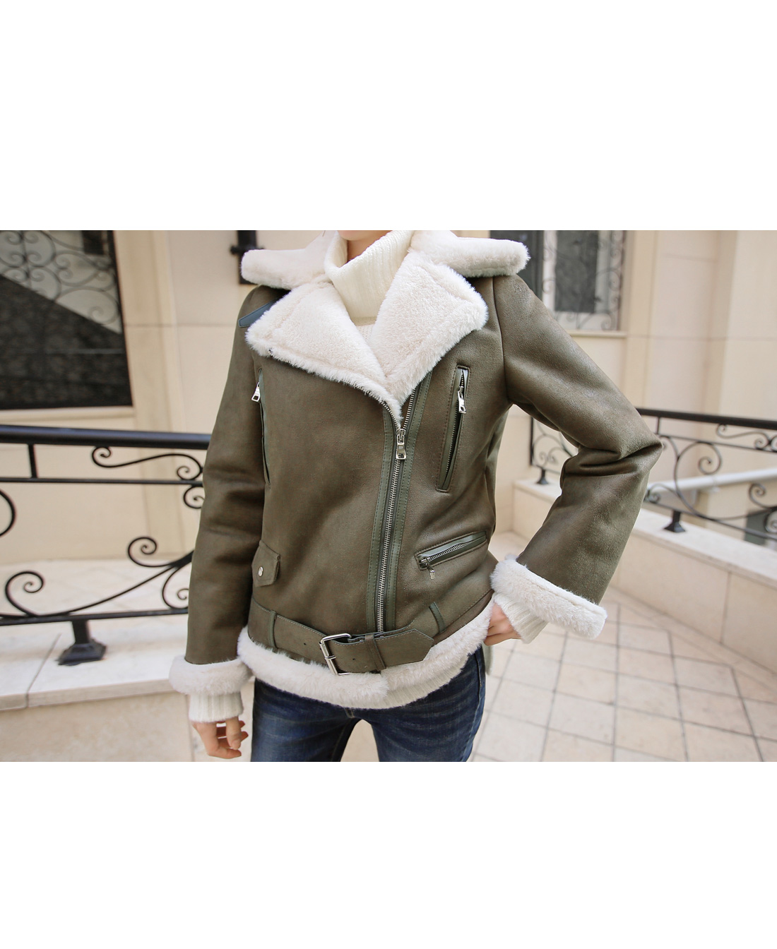 센터 부분 단추와 지퍼 디테일로 오픈, 클로징을 도와줘요.